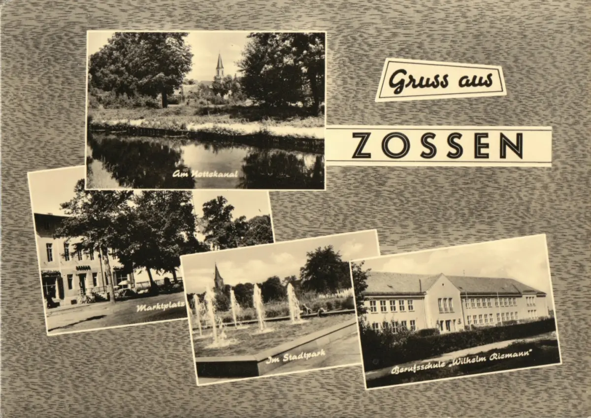 Ansichtskarte Zossen vier Abb., gestaltet Am Nottekanal, Marktplatz, Im Stadtpark, Berufsschule Erhaltung I-II postalisch gelaufen, gestempelt: Zossen, 11.10.63 Druckvermerk: 1963 Herstellungsland: DDR Verlag: Graphokopie H. Sander KG, Berlin - D1356