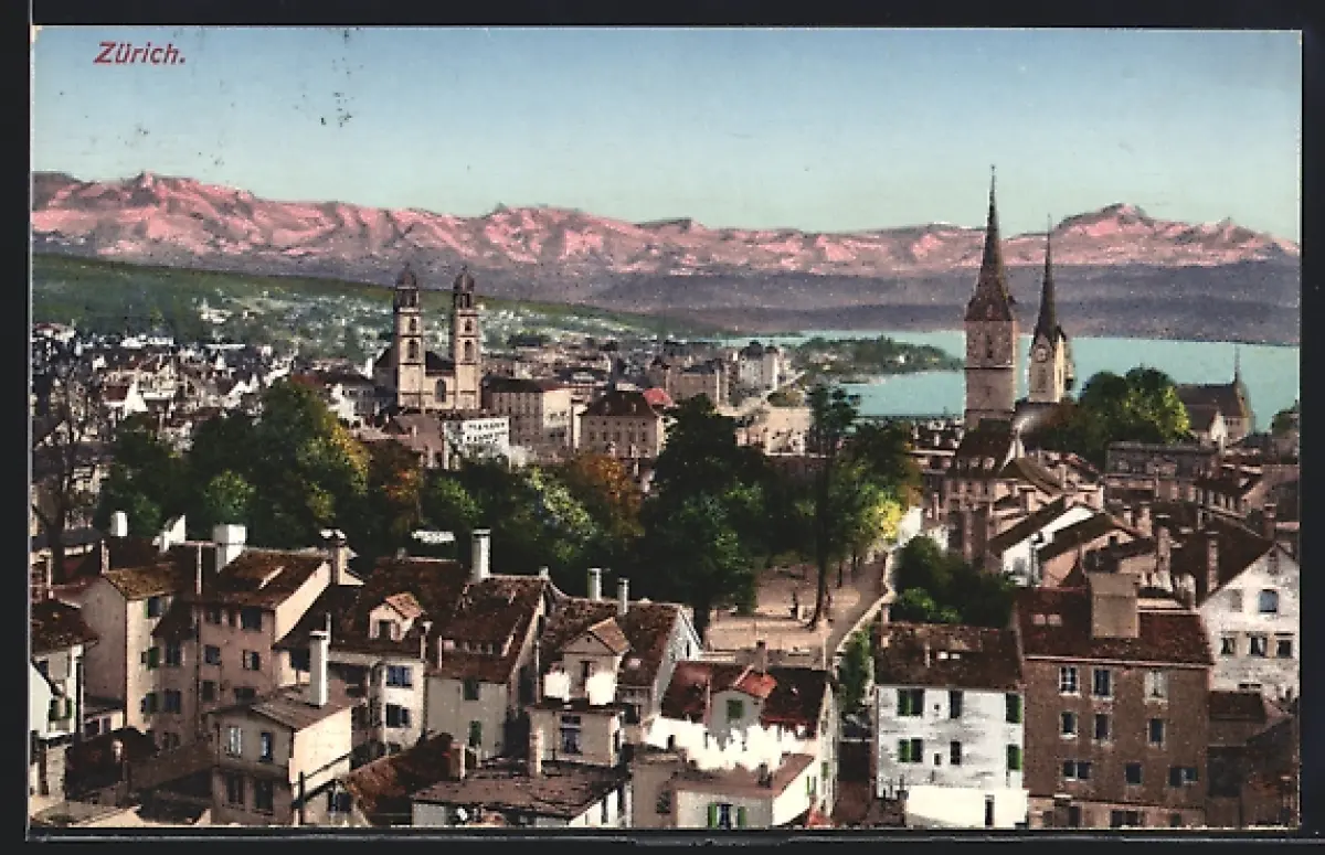 AK Zürich, Blick über die Dächer der Stadt nach den Alpen