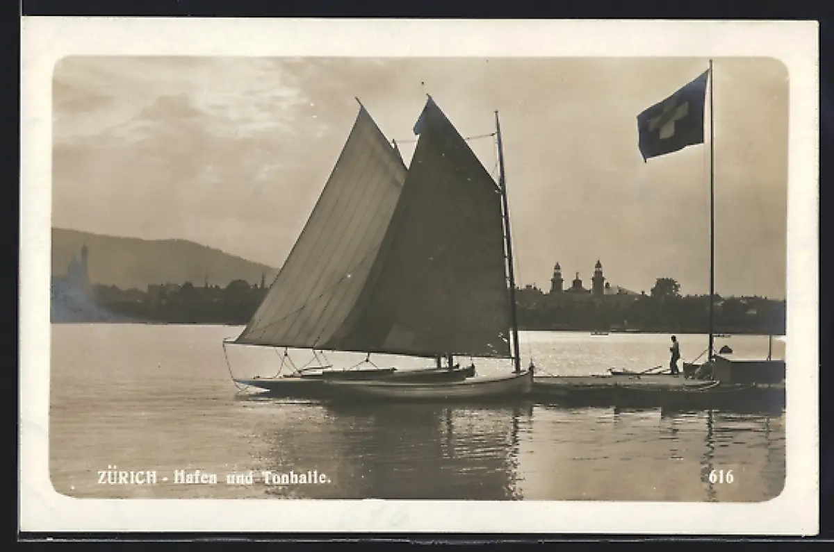 AK Zürich, Hafen mit Segelschiffen und Tonhalle