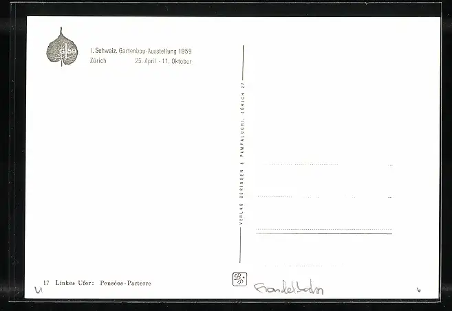 AK Zürich, I. Schweiz. Gartenbau-Ausstellung 1959, Linkes Ufer: Pensées-Parterre