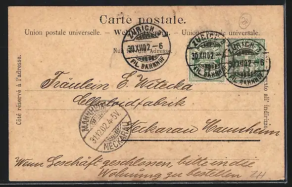 alte Ansichtskarte, gelaufen 1902, guter Zustand
