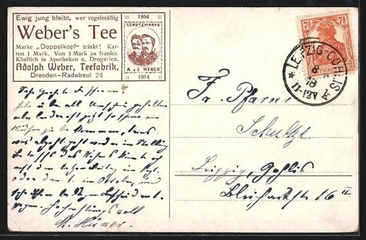 alte Ansichtskarte, gelaufen 1918, Eckknick re. unten, guter Zustand