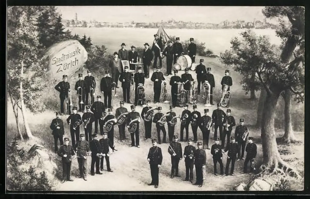 AK Zürich, Musikkapelle der Stadt m. ihren Instrumenten