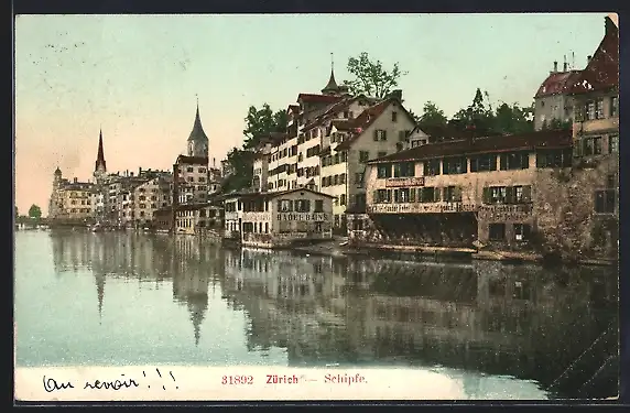 AK Zürich, Schipfe mit Buchbinderei B. Brock