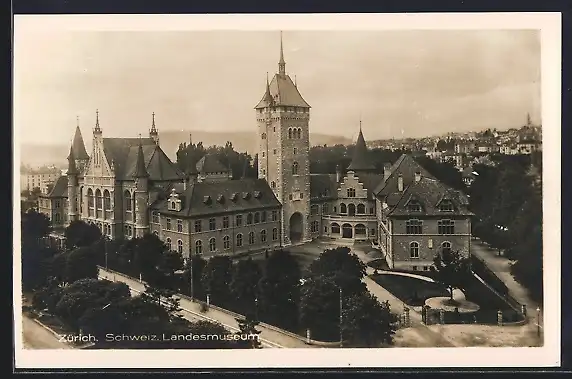 AK Zürich, Schweiz. Landesmuseum mit Anlagen aus der Vogelschau