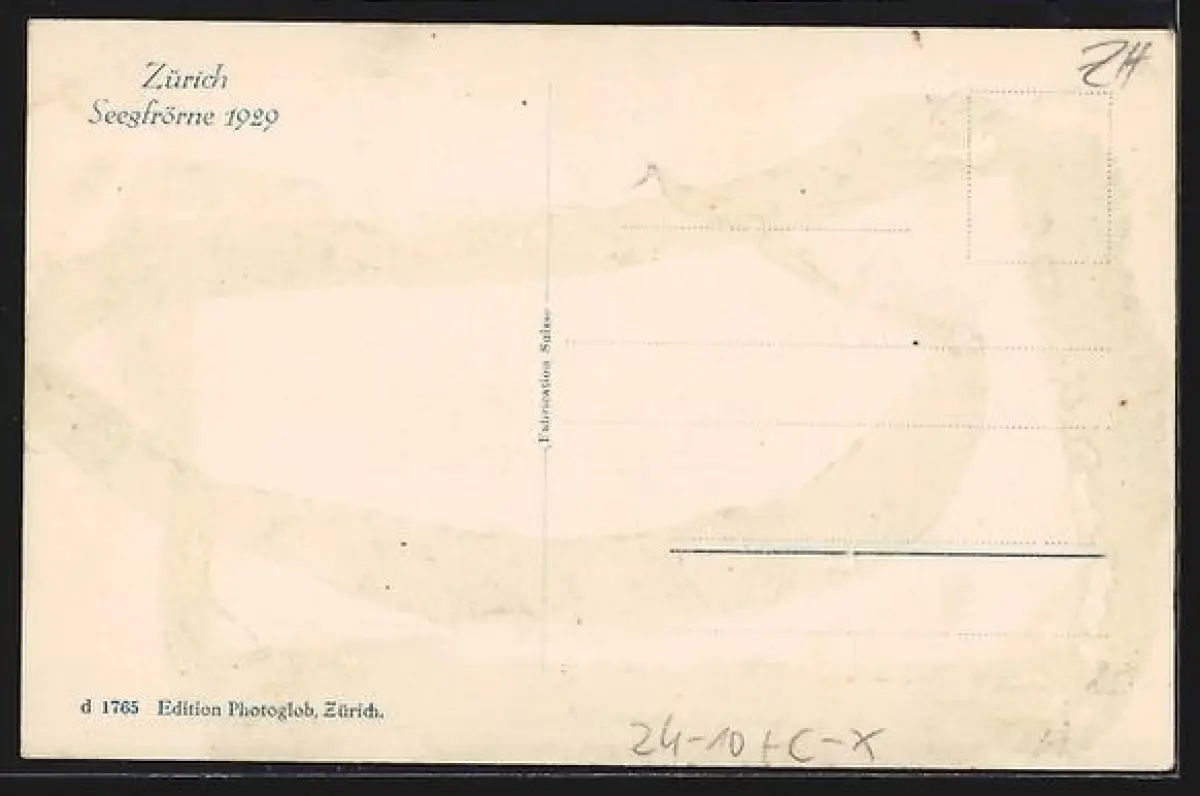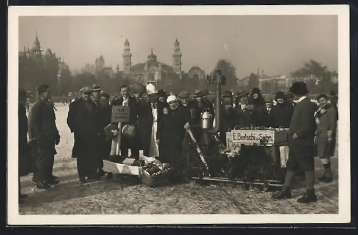 AK Zürich, Seegfrörne 1929, Wurstverkäufer auf dem zugefrorenen See
