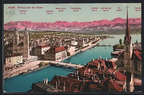 AK Zürich, Stadtansicht mit Alpenpanorama