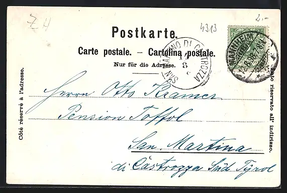 alte Ansichtskarte, gelaufen 1898, guter Zustand