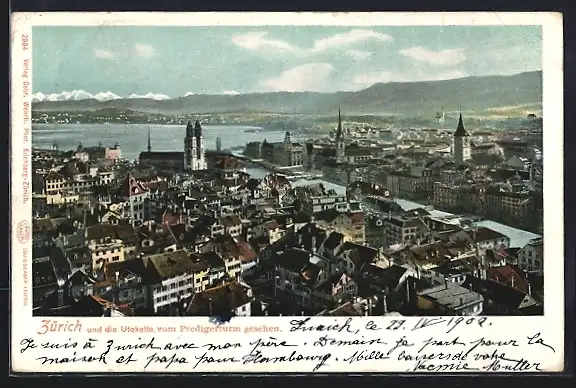 AK Zürich, Teilansicht mit Utokette vom Predigerturm gesehen