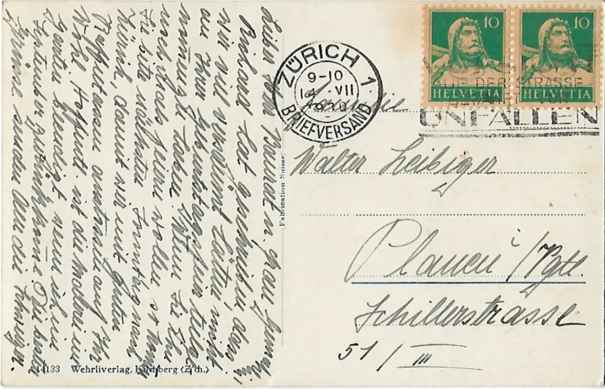 Kilchberg: Wehrliverlag, ca. 1920. Karte, 9 x 14 cm