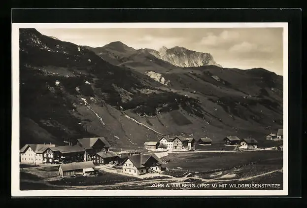 AK Zürs a. Arlberg, Ortsansicht mit Wildgrubenspitze