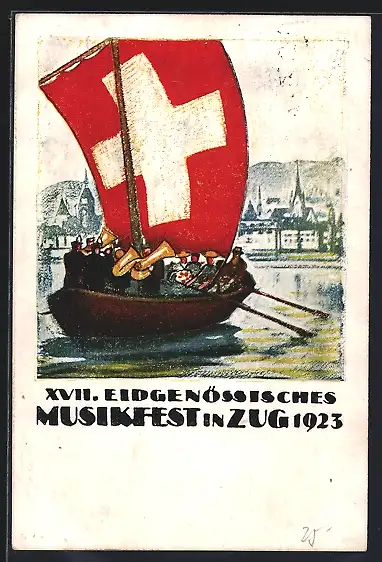 AK Zug, XVII. Eidg. Musikfest 1923, Musikkapelle auf einem Segelboot