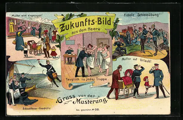 AK Zukunfts-Bild der Artillerie, Frauen dienen bei der Artillerie & in der Marine, Mutter auf Urlaub