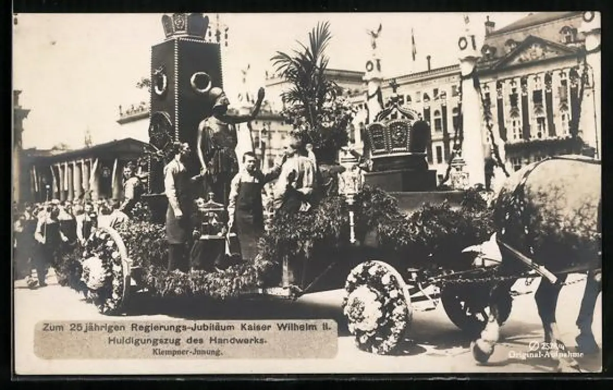 AK Zum fünfundzwanzig-jährigen Regierungs-Jubiläum Kaiser Wilhelm II., Huldigungszug des Handwerks, Klempner-Innung