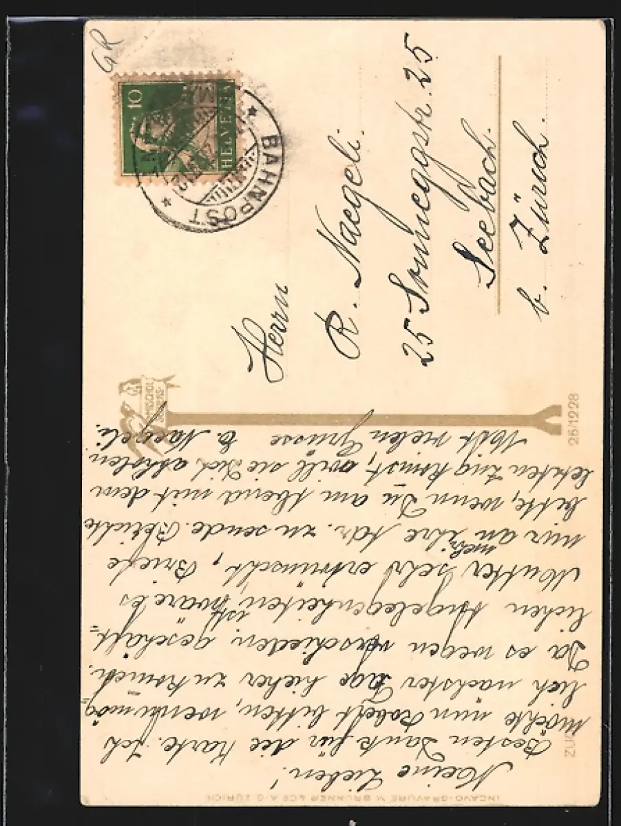 gelaufen 1927, Eckknicke li. unten u. re., Bugspuren re. oben u. mittig, guter Zustand