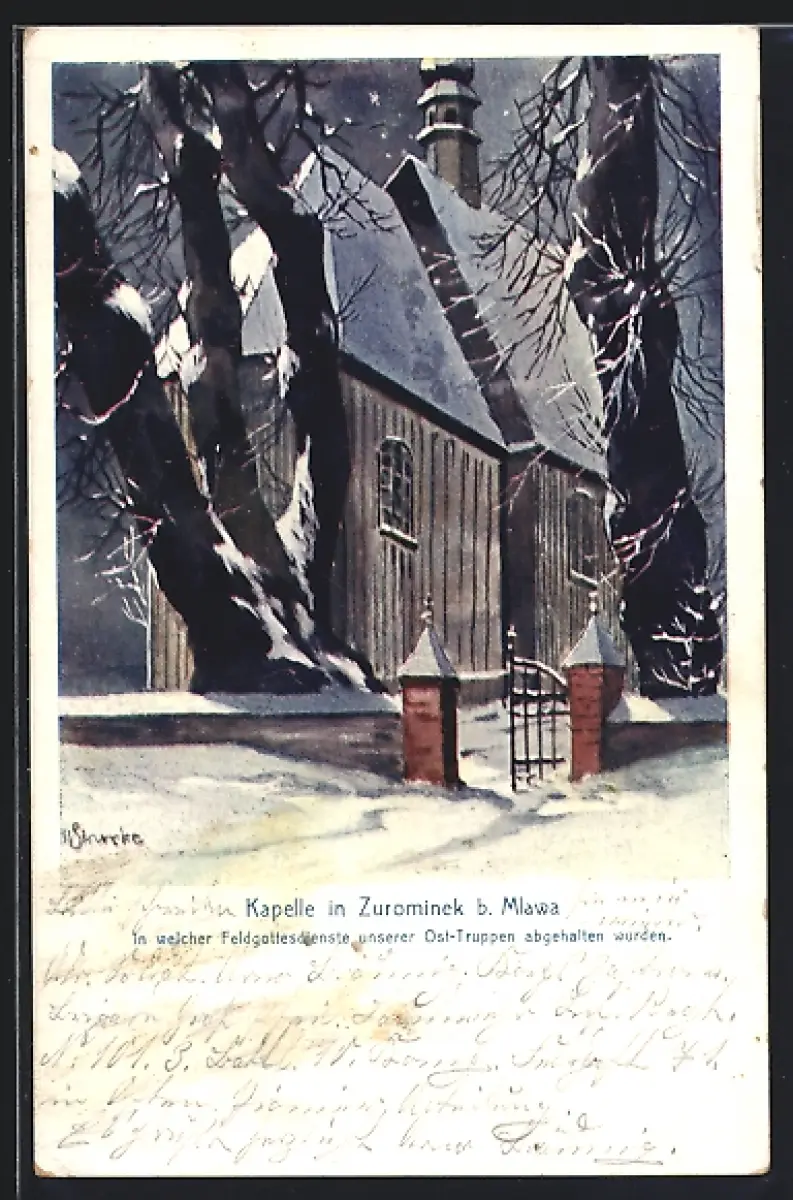 AK Zurominek b. Mlawa, Kapelle im Winter