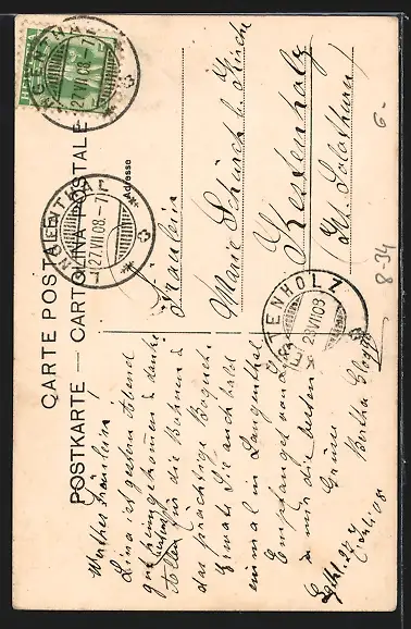 alte Ansichtskarte, gelaufen 1908, guter Zustand