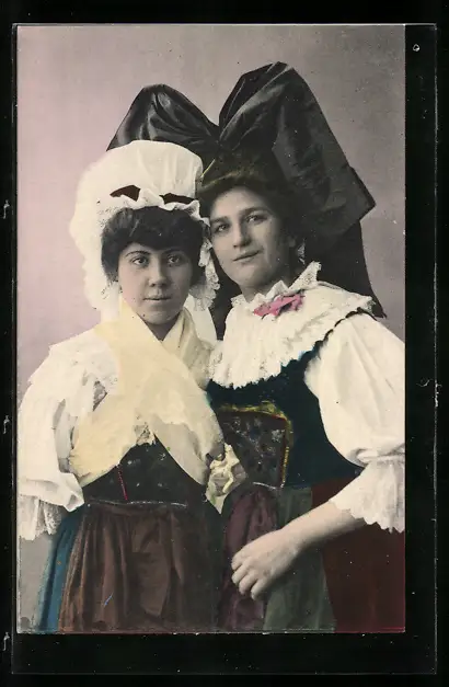 AK Zwei Frauen in elsass-lothringischer Tracht mit Kopfbedeckung