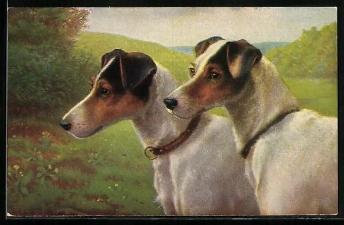 AK Zwei Kurzhaar-Terrier mit Halsband