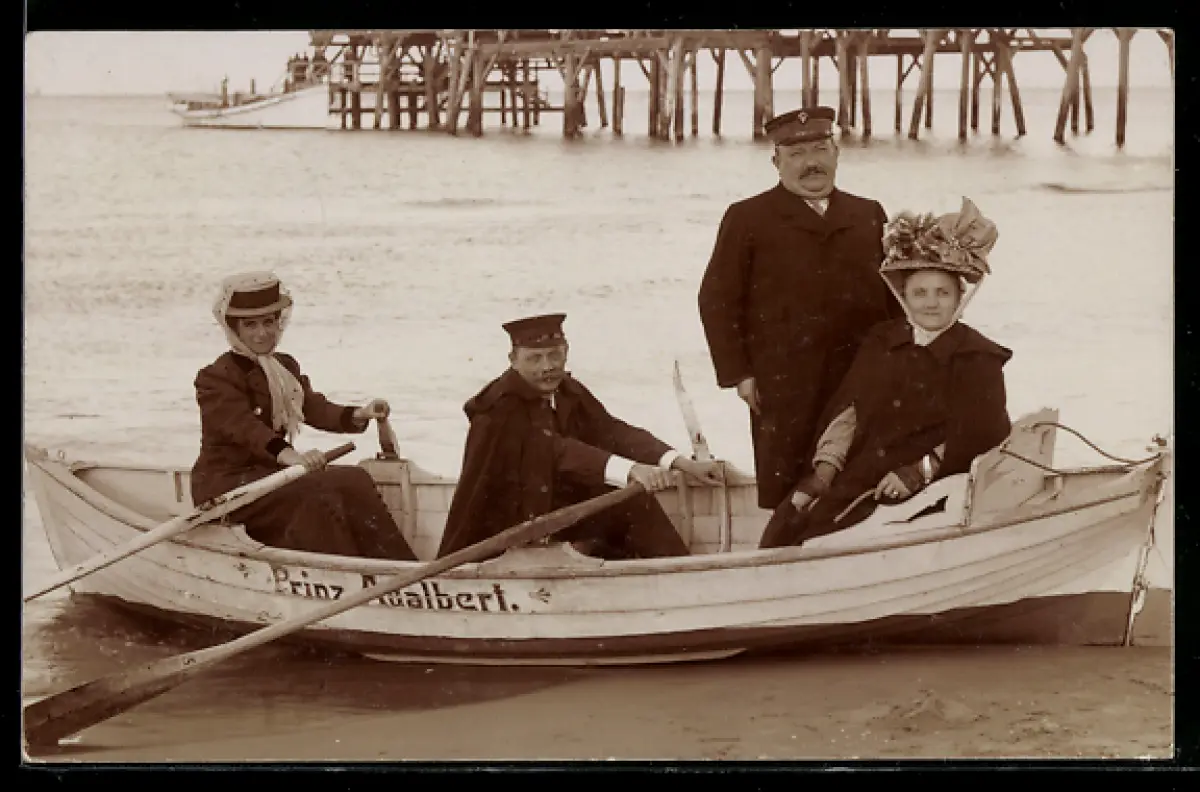 AK Zwei Paare im Ruderboot Prinz Adalbert