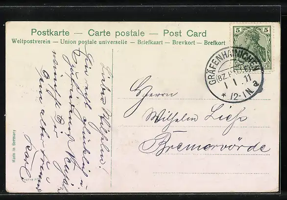 alte Ansichtskarte, gelaufen 1911, guter Zustand