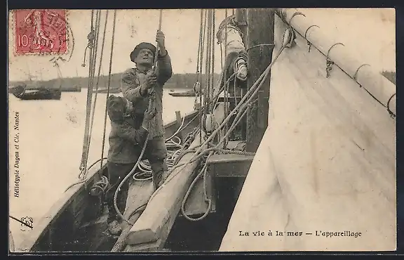 AK französische Fischer setzen Segel