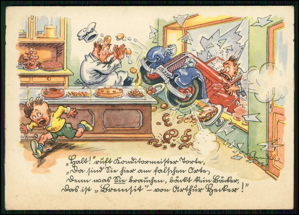 AK - humorvolle Szene in einer Konditorei - in der ein Unfall passiert ist Chaos