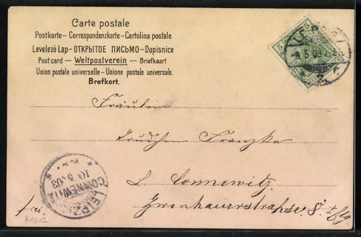 alte Ansichtskarte, gelaufen 1903, Stempelspur, guter Zustand