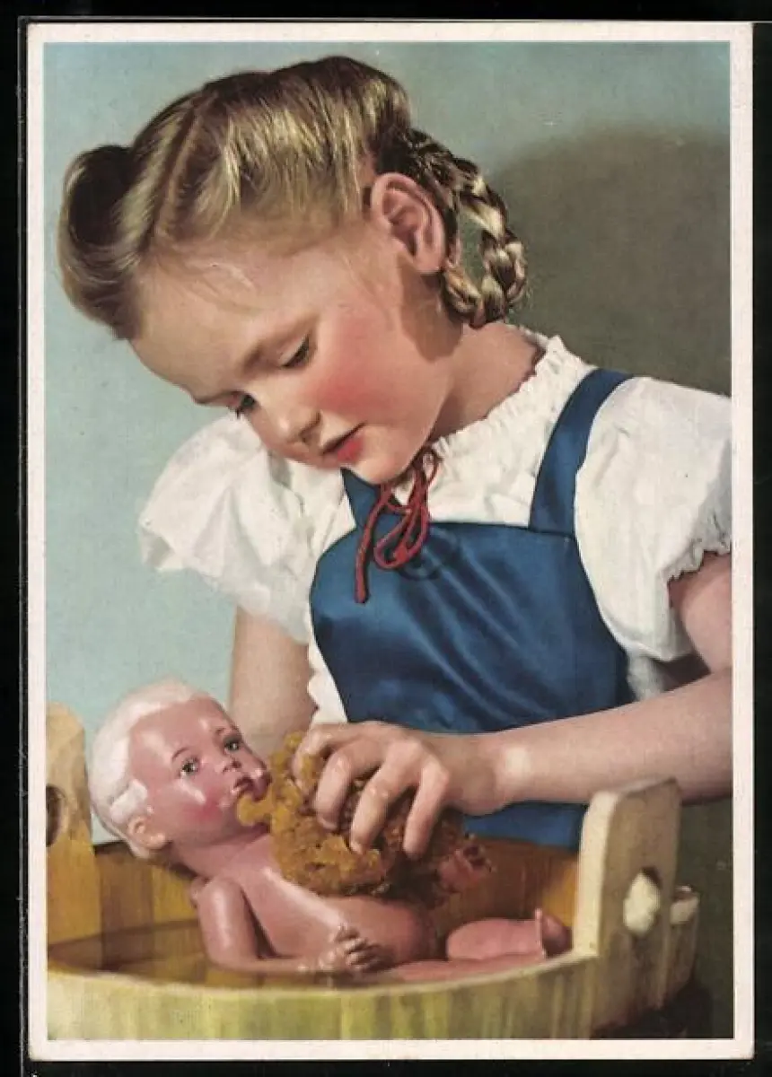 AK kleines Mädchen badet ihre Puppe
