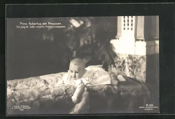 AK niedlicher Prinz Hubertus liegt als Baby auf einer Felldecke