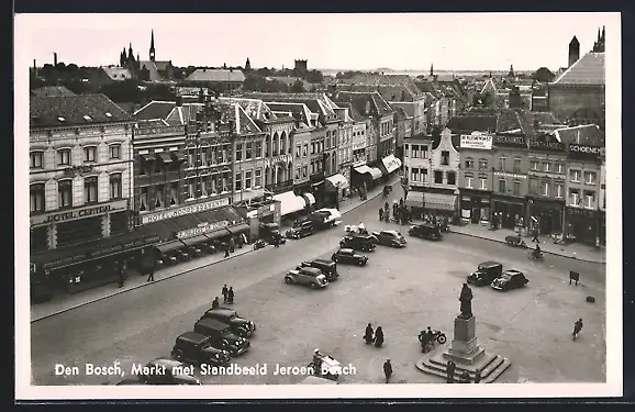 AK ’s-Hertogenbosch /Den Bosch, Markt met Standbeeld Jeroen Bosch