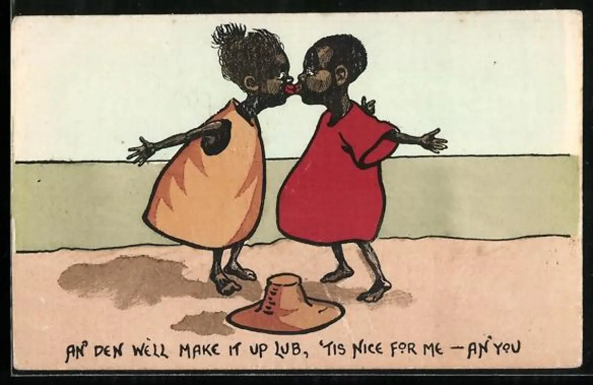 AK schwarzes Paar küsst sich, Kolonialhumor