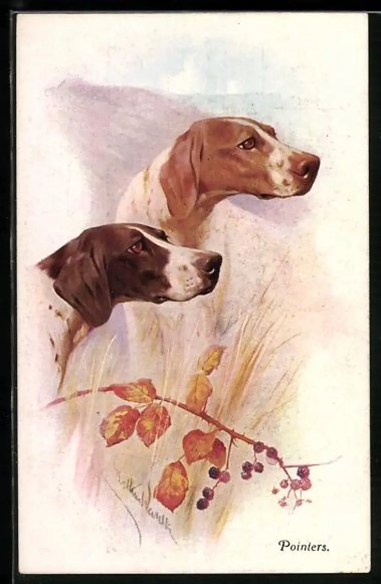 AK zwei Jagdhunde-Pointers bei der Witterung