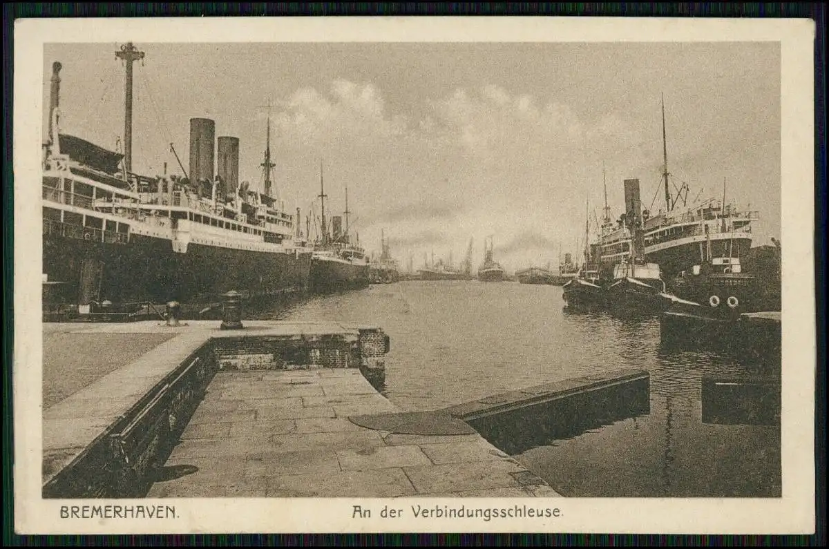 AK Postkarte Bremerhaven verbindungsschleuse Dampfer Schlepper Boote 1928