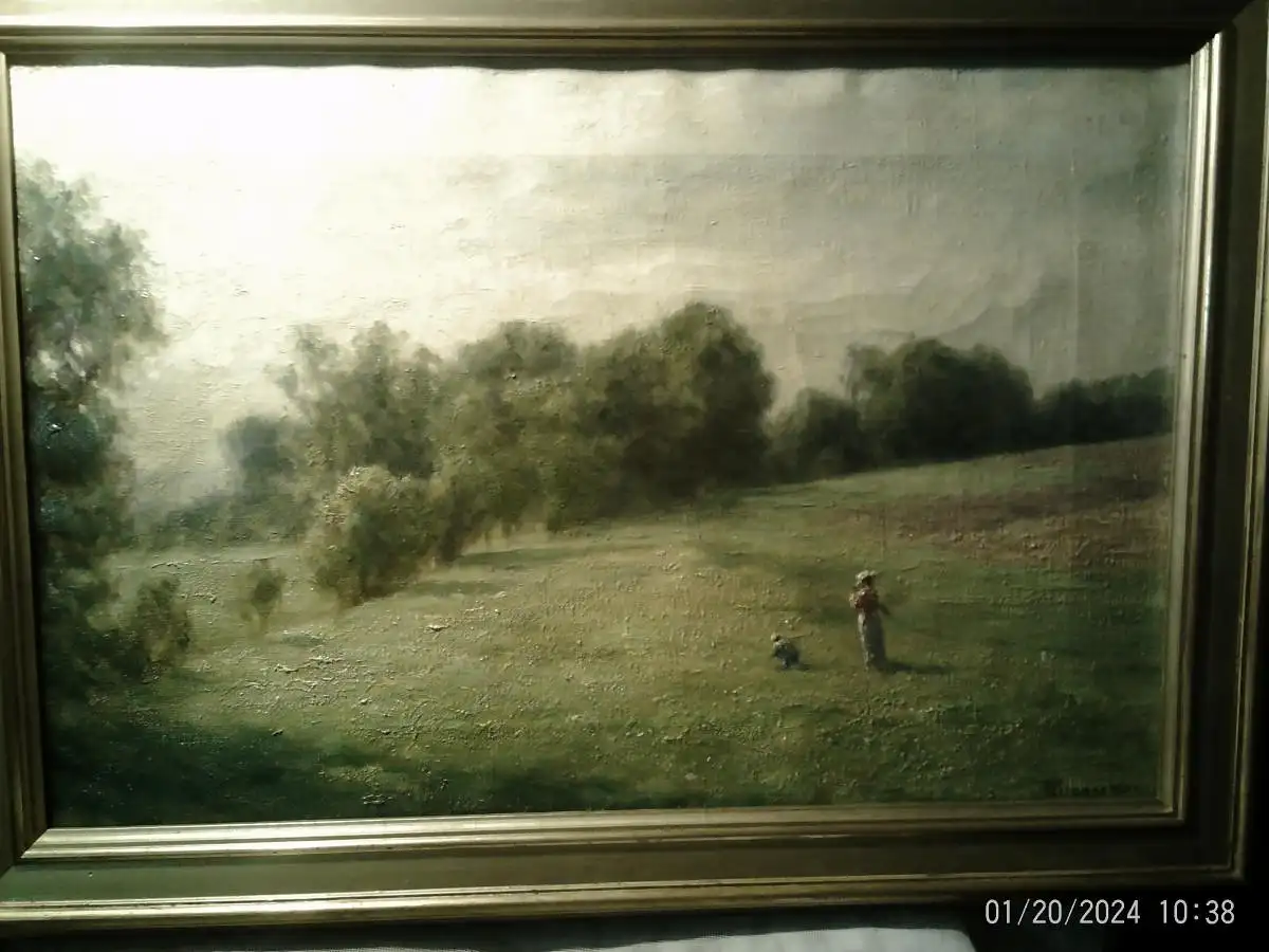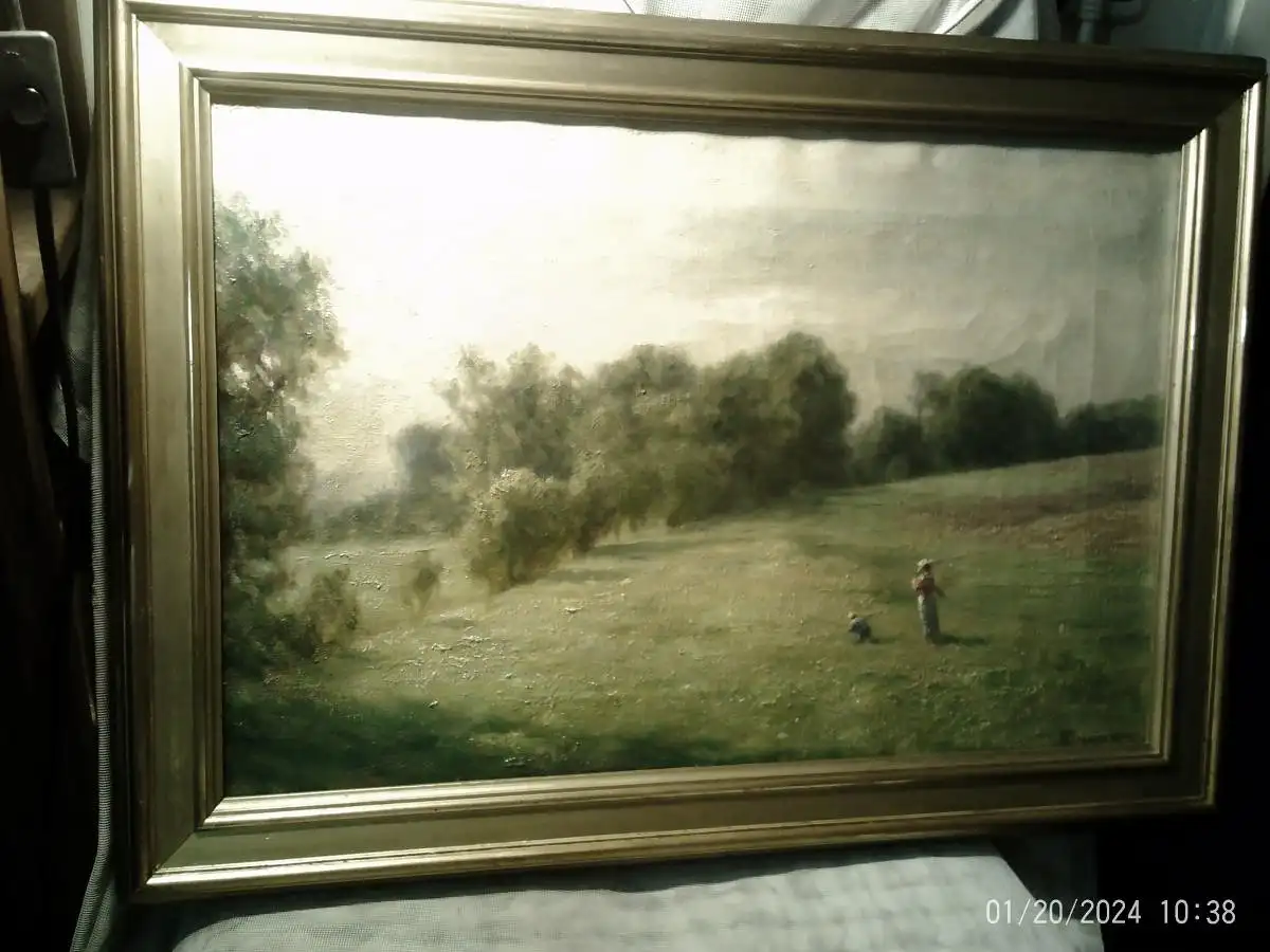 Am Auktionsmarkt sehr selten , nur 1 Gemälde gefunden: "Eine Frau trägt Brennholz an einem Flussufer"