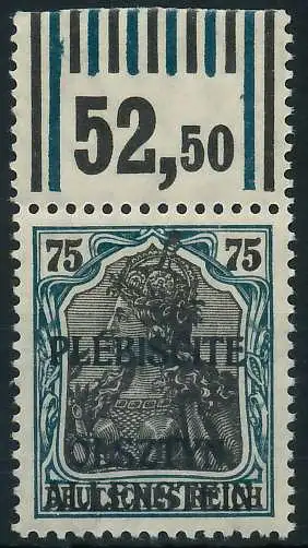 75 Pfg Wert aus der Aufdruckausgabe Allenstein auf den Freimarken des deutschen Reiches (Germania 1916/1918) - Aufdruck 3-zeilig PLEBISCITE...
