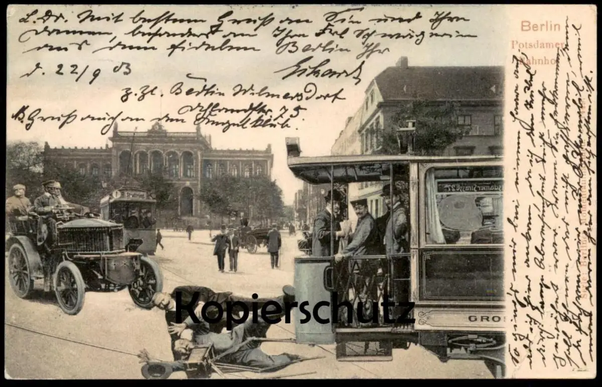 ALTE AK PHOTOMONTAGE BERLIN POTSDAMER BAHNHOF Fotomontage montage photo Surrealisme Tram tramway Strassenbahn Berlino