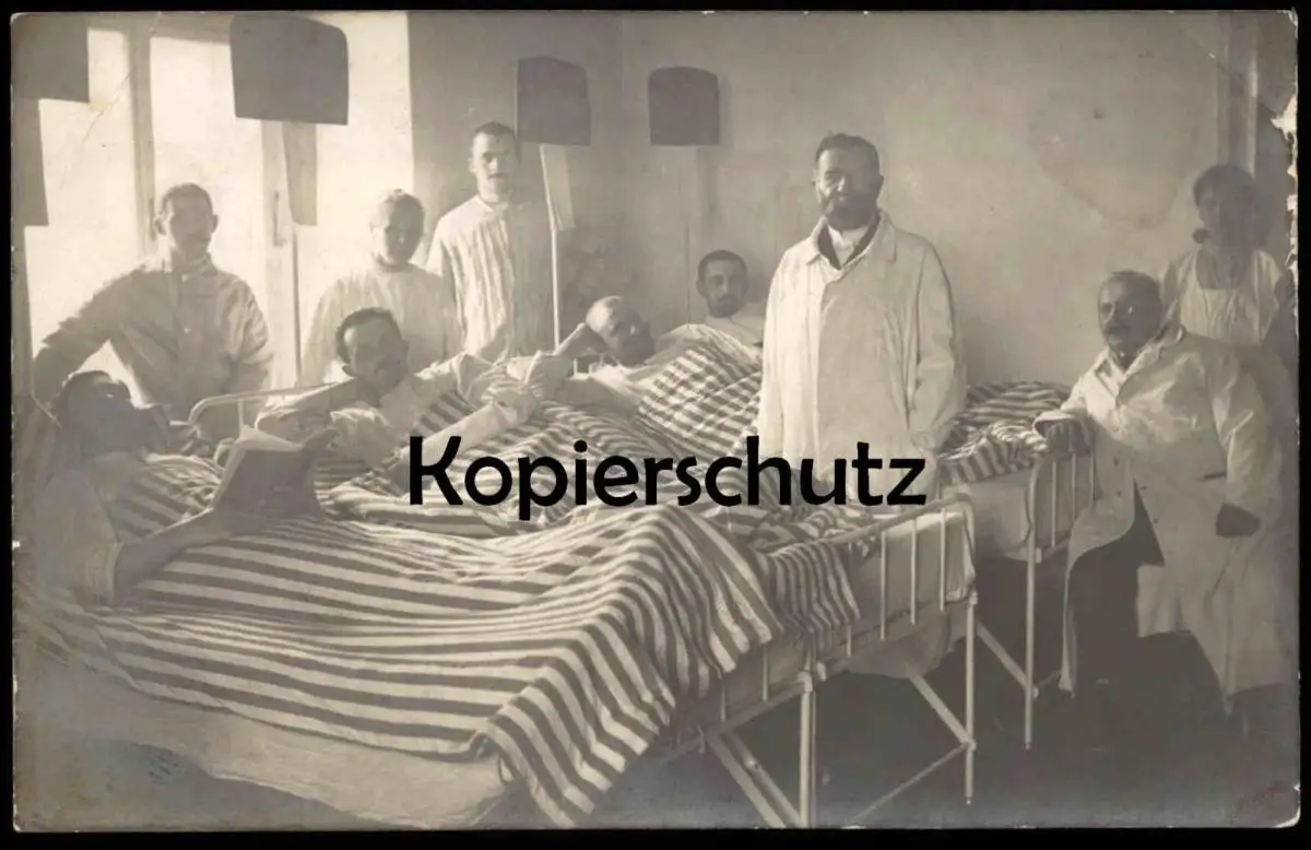 ALTE FOTO POSTKARTE MILETIN LAZARETT HOSPITAL SOLDATEN ÄRZTE KRANKENSCHWESTER KRANKE GIPSARM GIPS