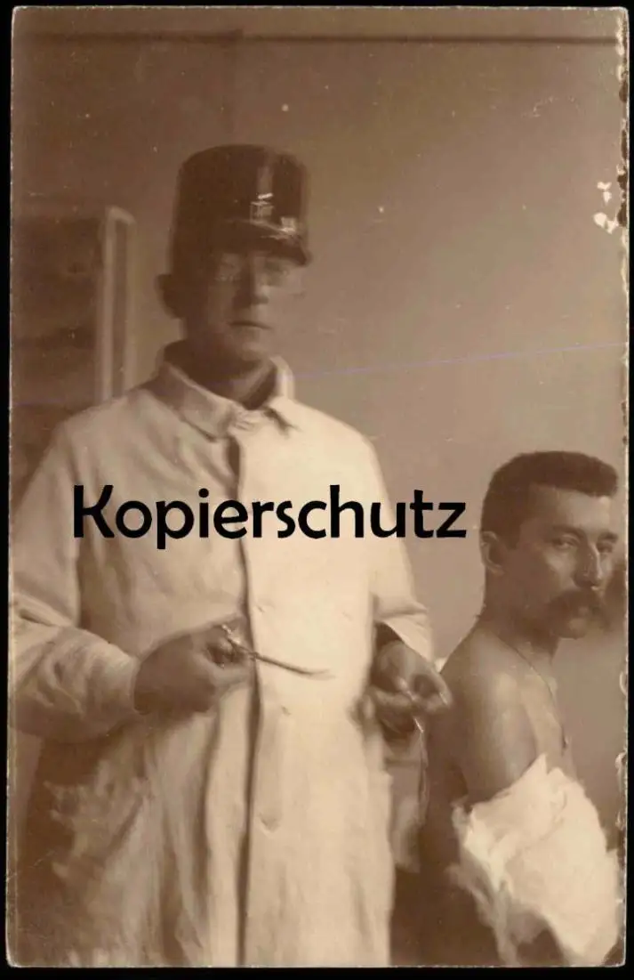 ALTE FOTO POSTKARTE MILITÄR SOLDAT LAZARETT ARZT SCHERE VERBAND SCHNÄUZER OBERARZT BRETZLAW PACAL photo AK Ansichtskarte
