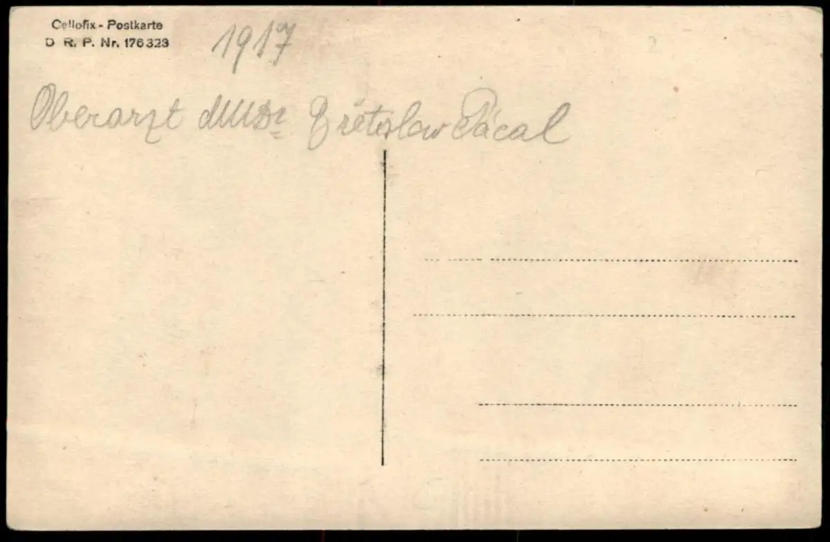 ALTE FOTO POSTKARTE MILITÄR SOLDAT LAZARETT ARZT SCHERE VERBAND SCHNÄUZER OBERARZT BRETZLAW PACAL 1917Verlag: Cellofix Postkarte; D. R. P.
