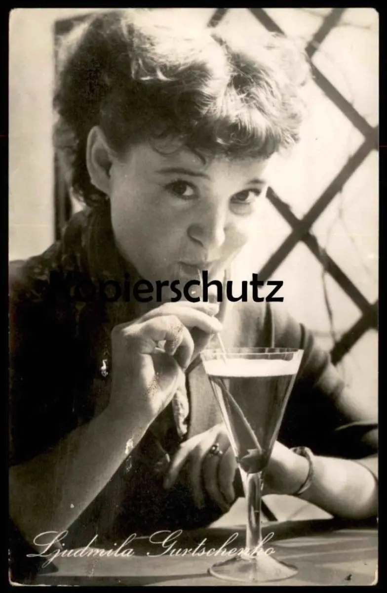 ALTE KARTE LJUDMILA GURTSCHENKO MIT COCKTAIL FILM-SCHAUSPIELERIN SAHEN SIE IN DEM SOWJETISCHEN FARBFILM NUN SCHLÄGT´S 13 (KARNEVALSNACHT)