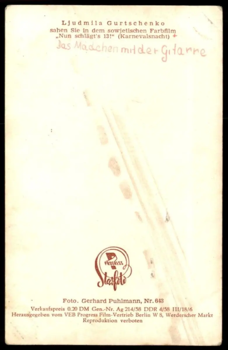 Verlag: Starfoto VEB Progress, Berlin, Foto: Gerhard Puhlmann