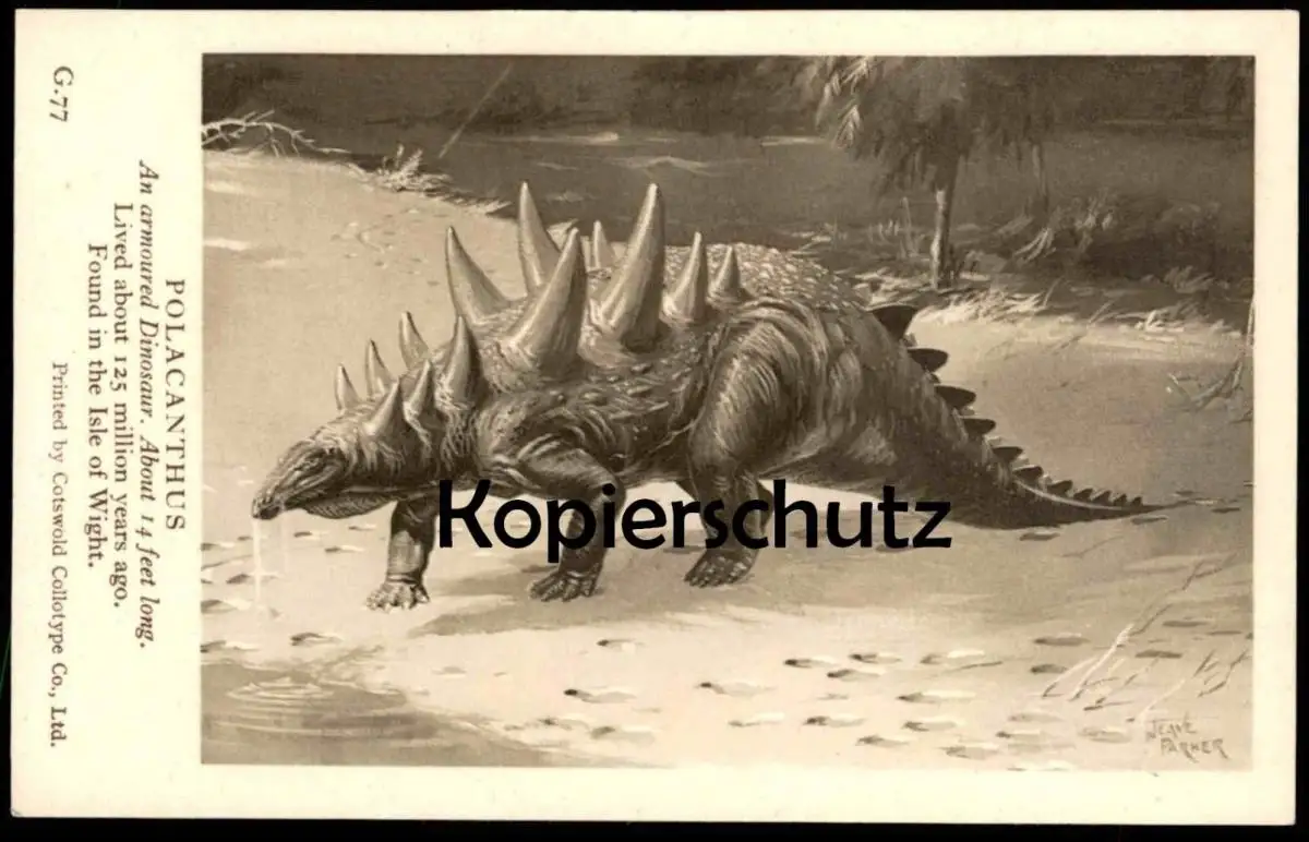 ALTE KARTE POLACANTHUS An armoured Dinosaur. About 14 feet long. Lived about 125 million years ago. Found in the Isle of Wight. Neave Parker.