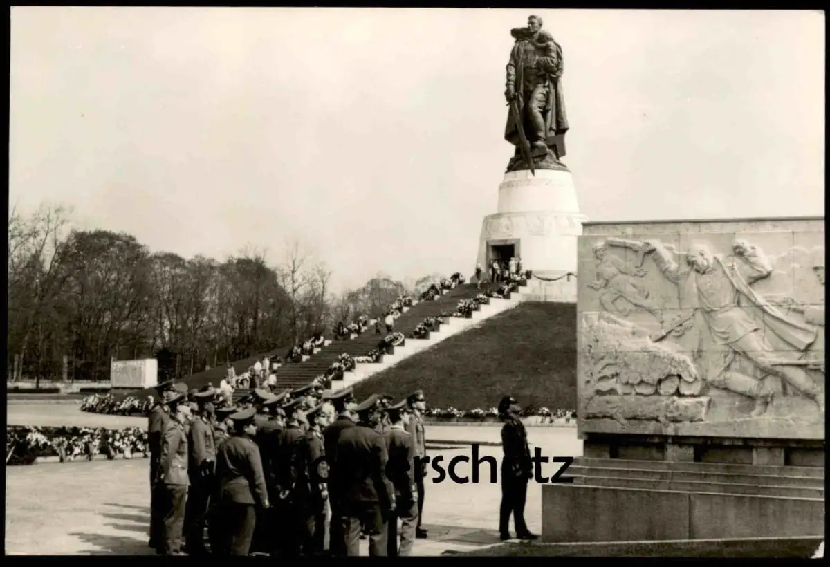 ALTE KARTE POSTKARTE TREPTOW BERLIN SOWJETISCHES EHRENMAL EHRFÜRCHTIGE SOLDATEN NVA Uniform cpa postcard Ansichtskarte