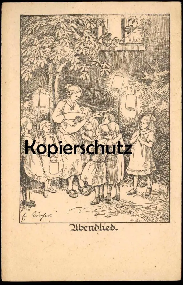 ALTE KÜNSTLER POSTKARTE ABENDLIED KINDER ELISABETH LÖRCHER WELTKRIEG LAUTE LATERNEN KIND LAMPION Ansichtskarte postcard