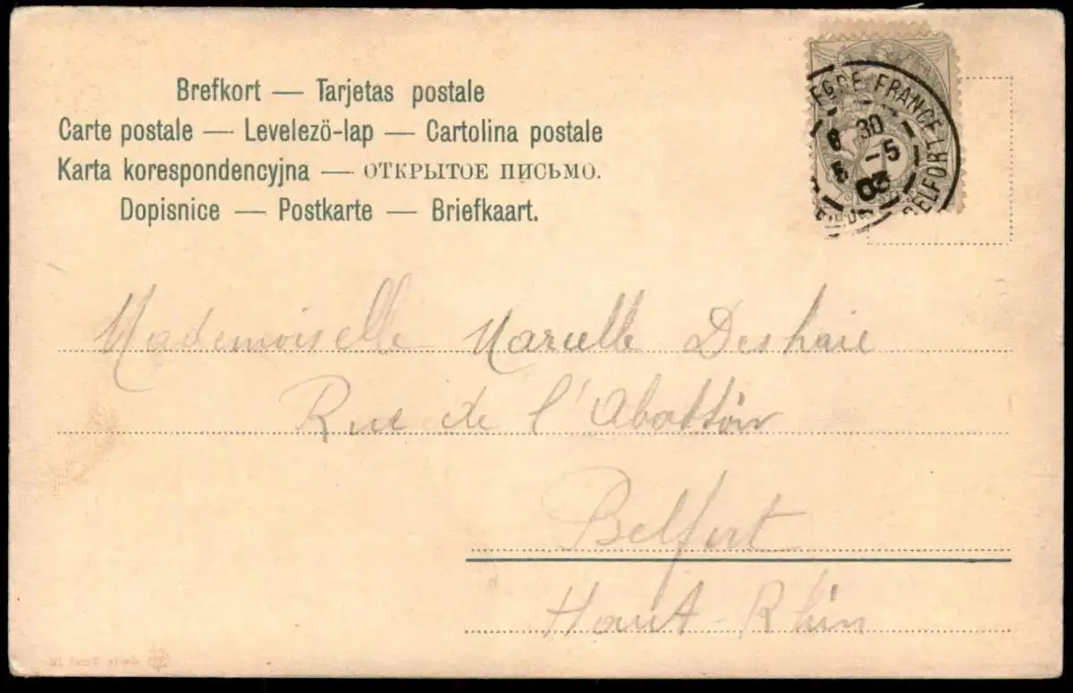 Gelaufen: 05.05.1903 mit Stempel Belfort nach Belfort