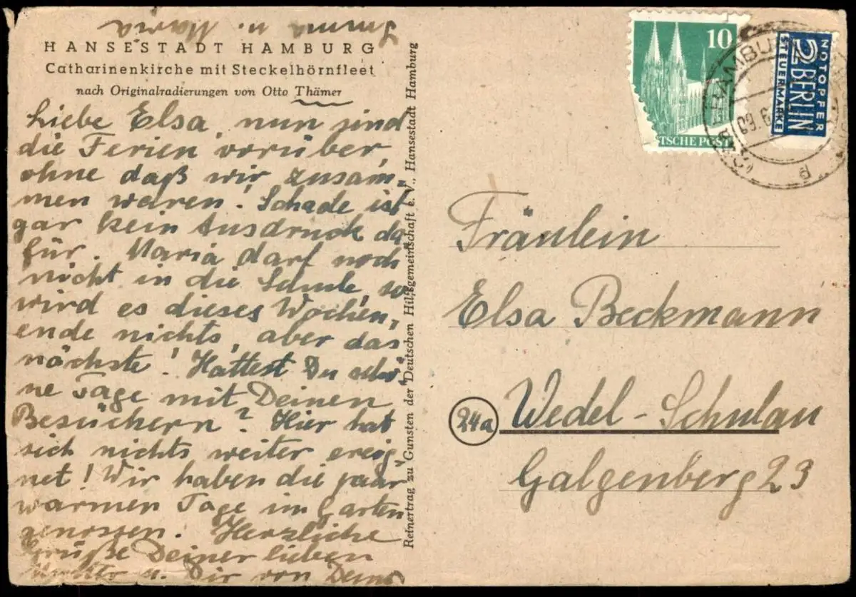 Gelaufen: 09.06.1949 mit Stempel Hamburg nach Wedel-Schulau