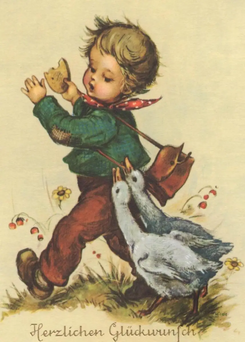 ALTE KÜNSTLER POSTKARTE HERZLICHEN GLÜCKWUNSCH ZUM NAMENSTAG KIND GANS goose oie child enfant cpa AK postcard