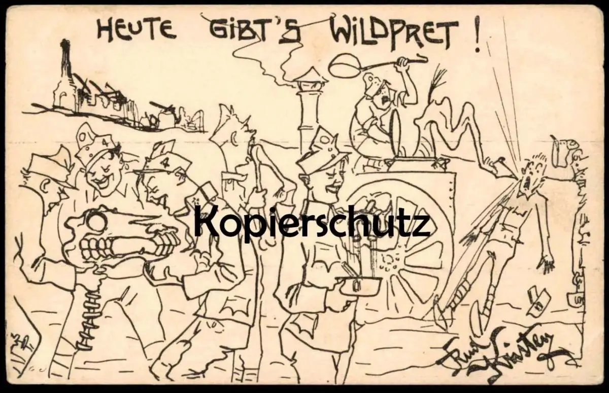 ALTE KÜNSTLER POSTKARTE HEUTE GIBT'S WILDPRET FRONT WELTKRIEG SOLDAT RUDOLF KRISTEN Militär Fleisch Wildbret Wildfleisch