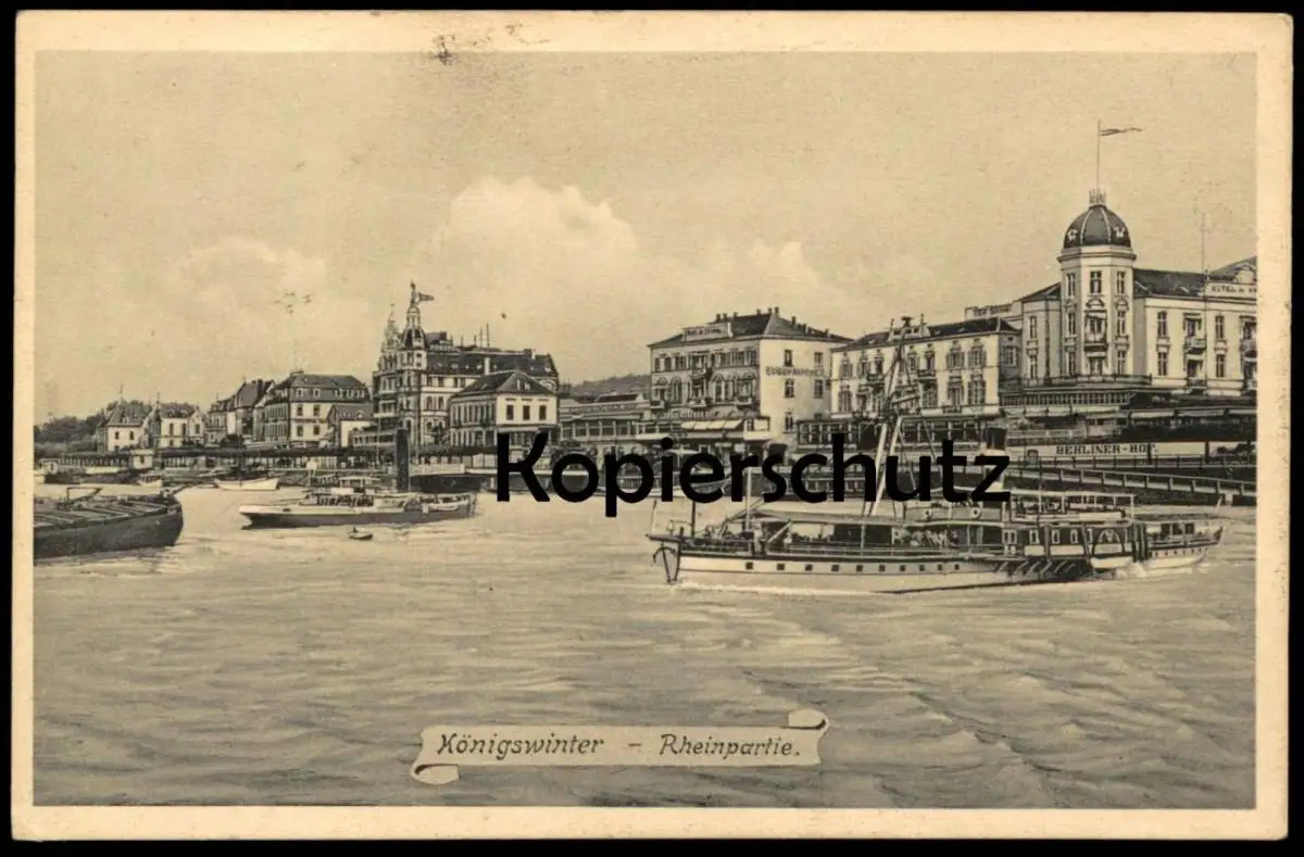ALTE KÜNSTLER POSTKARTE KÖNIGSWINTER RHEINPARTIE HOTEL BERLINER HOF RHEIN SCHIFF SCHIFFEVerlag: Dr. Trenkler Co., Leipzig Kgw. 33